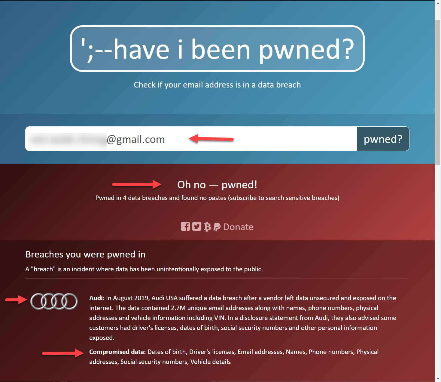 How to Use 'Have I Been Pwned' - Email Data Breach Check Breached Sample Audi